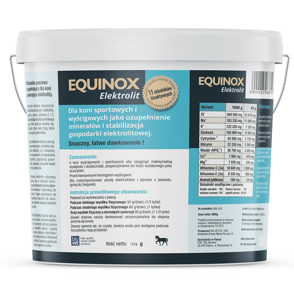 Elektrolity pełnią kluczową rolę w regulacji ciśnienia osmotycznego, równowadze płynów, aktywności nerwowej i mięśniowej, co czyni ich uzupełnienie niezwykle ważnym w utrzymaniu zdrowia i osiągnięciu najlepszych wyników. Skład Equinox Rehydrate został starannie dobrany, aby dostarczyć podobne ilości elektrolitów, jakie konie tracą podczas wysiłku. Glukoza jest źródłem natychmiastowej energii, a jej obecność wraz z glicyną pomaga w lepszej absorpcji elektrolitów i wody z jelita cienkiego. Dodatek cytrynianu sodu przyczynia się do szybszej regeneracji mięśni, neutralizując kwas mlekowy.105,00 zł Dodaj do koszyka